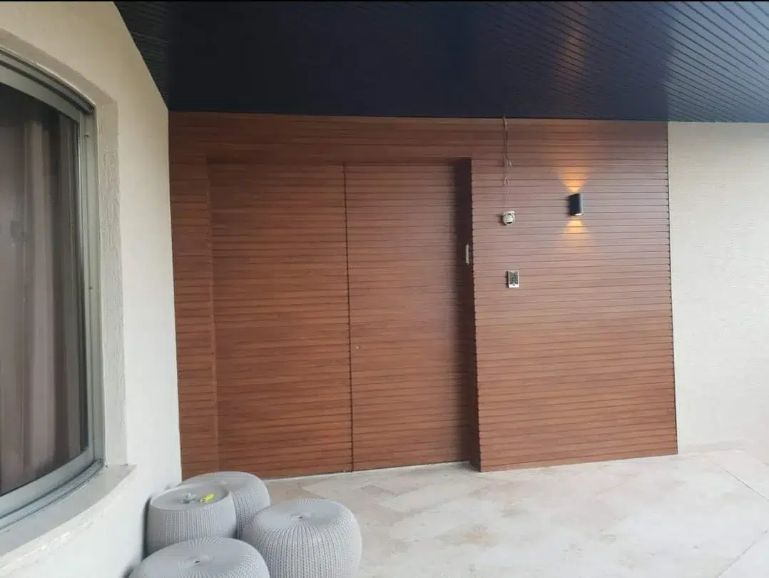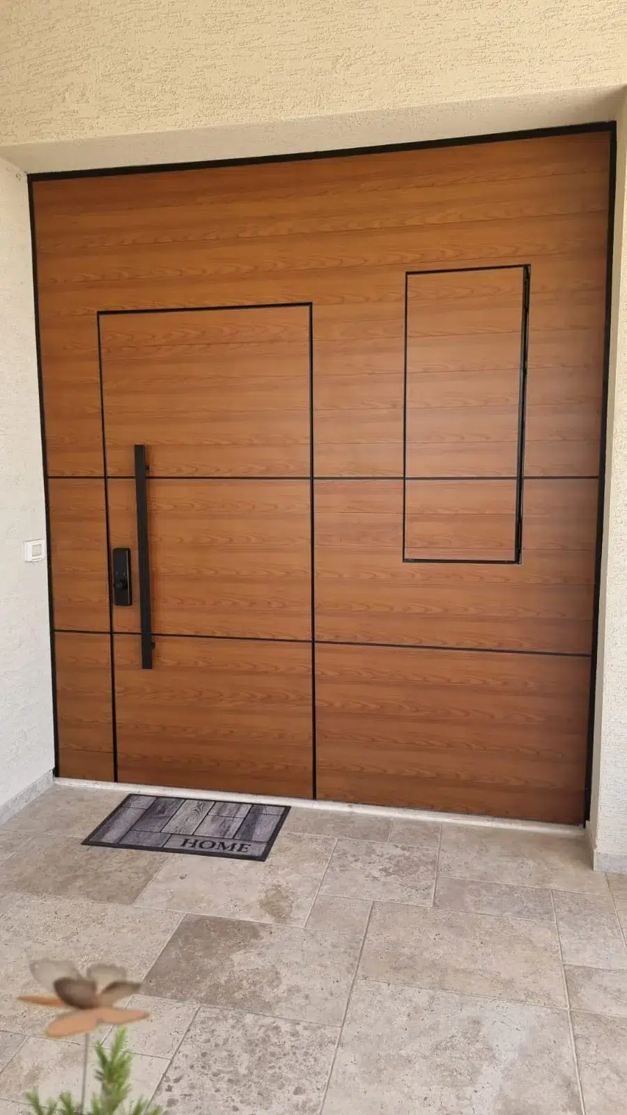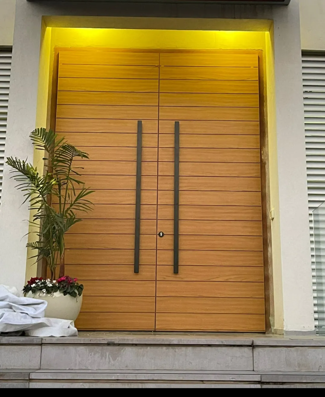 דמיינו קיר חיצוני מחופה אלומיניום בגוון אפור-פחם, שבו הדלת "נעלמת" בקו אחיד, או קיר פנים עם חיפוי עץ-אלומיניום חמים שבו הדלת משתלבת באופן טבעי. החיפוי לא רק יוצר אפקט ויזואלי עוצמתי, אלא גם תורם לאחידות הסגנון בכל חלל הכניסה.