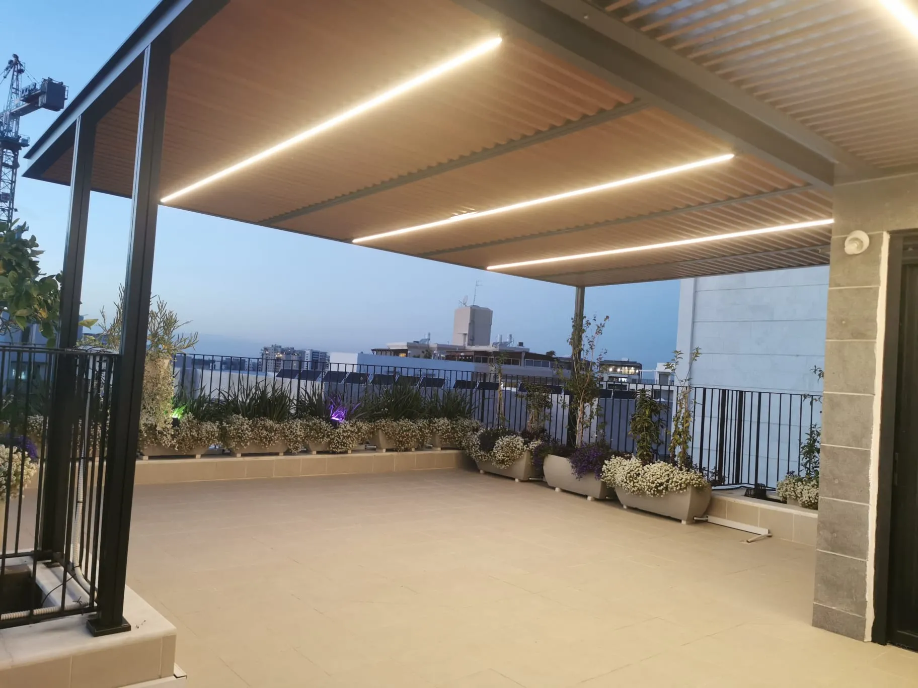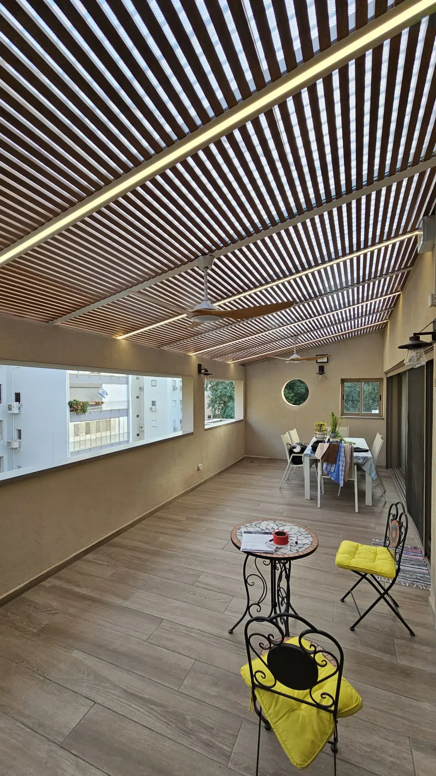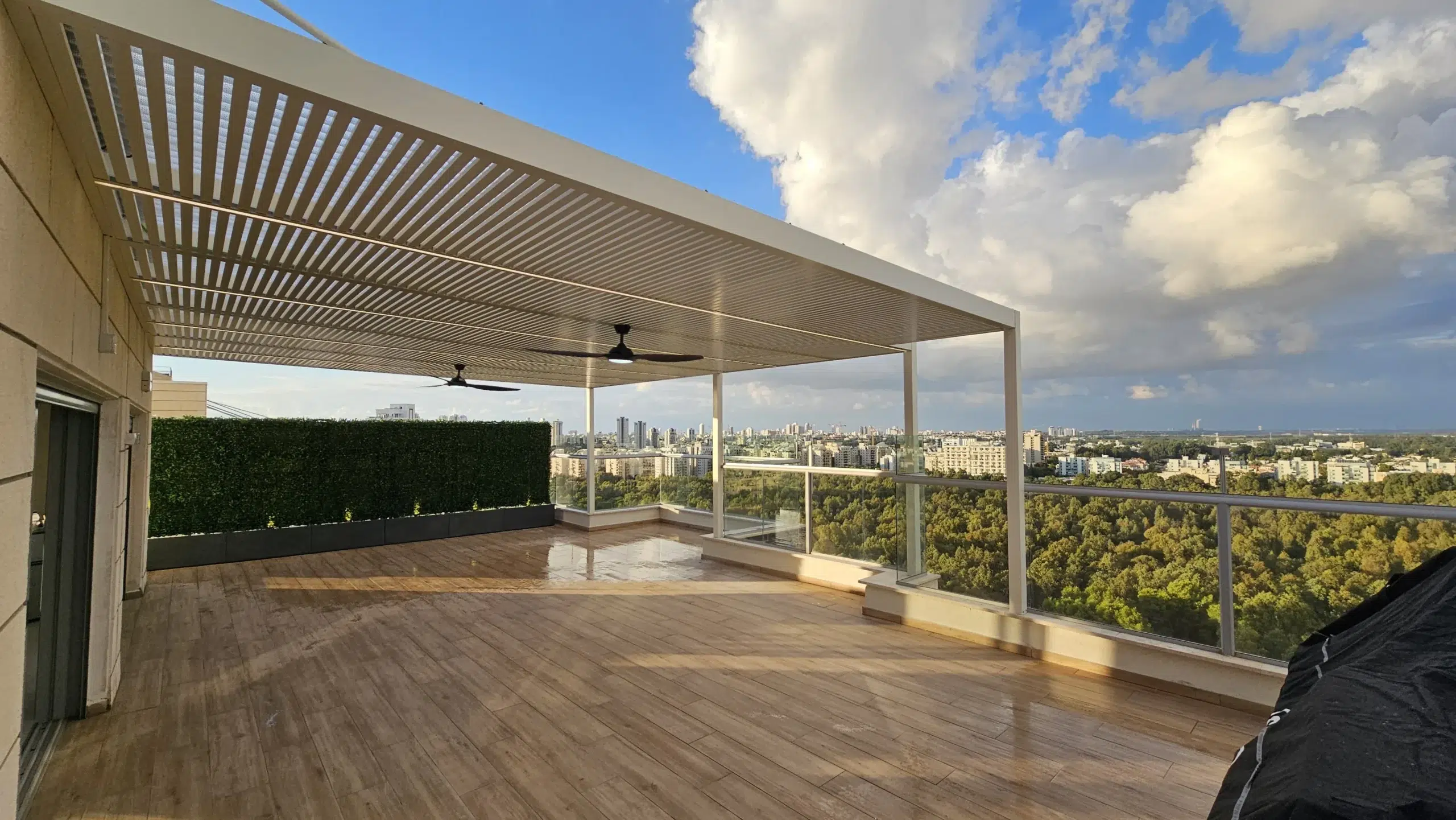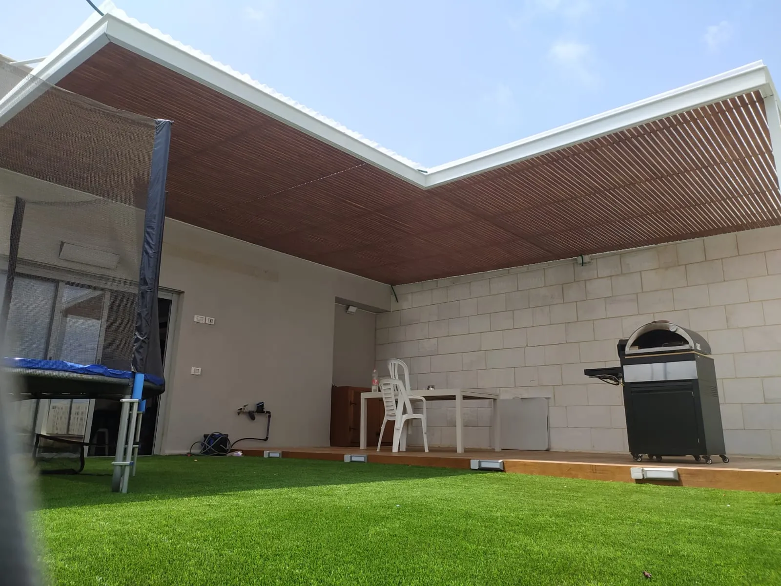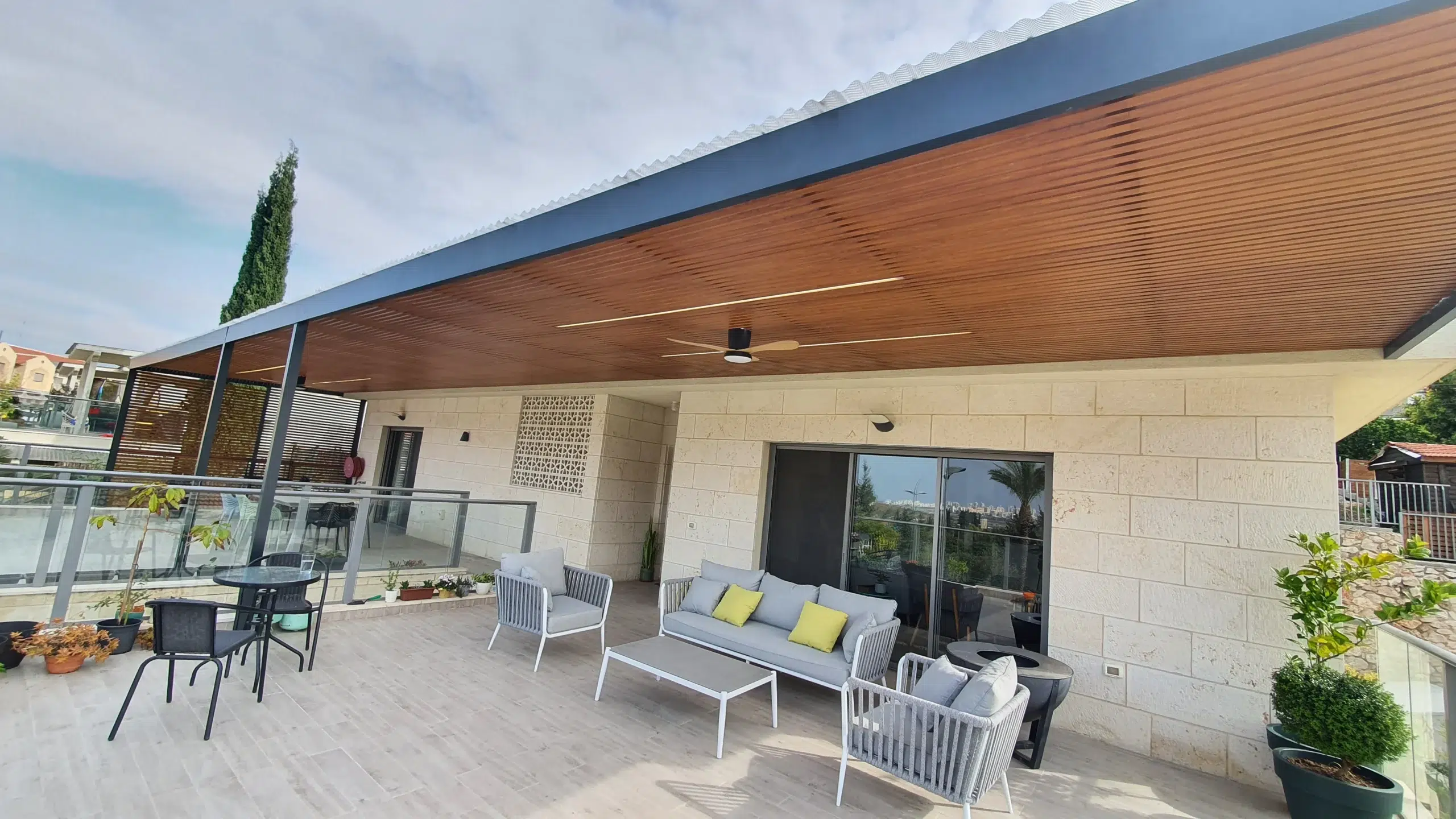 - תוספות הצללה – וילונות הצללה, תריסים מתכווננים או כיסוי פוליקרבונט להגנה מלאה מגשם.